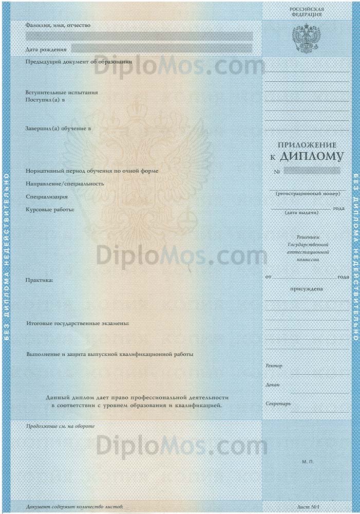 Приложение к диплому образца до 2013 Подробнее Заказать |